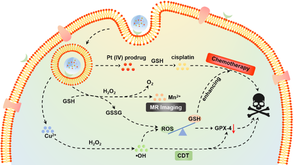 CMBP纳米颗粒打破肿瘤细胞内氧化还原平衡的作用机制示意图
