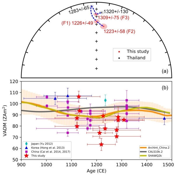 地磁场是地球的基本物理场之一,起源于地球液态外核,能够反映地球内部结构和运动状态,同时环绕在地球周围,保护着地球宜居环境。研究地磁场变化规律在认识地球深部动力机制、地表过程和环境、现代地磁场特征和变化趋势等方面具有重要意义。大量不同时空分布的高质量观测数据是全面认识地磁场区域和全球变化特征的必要条件。近现代的卫星观测数据满足这一要求,但覆盖时间短。考古磁学可以把地磁场观测记录回溯至近几千年甚至全新世,在建立地磁场区域和全球模型方面具有重要贡献。然而,目前全球考古磁学数据分布不均,大部分数据集中在欧洲和中东地区,北半球低纬度地区和南半球数据稀少,制约了对地磁场形态特征和变化规律的准确认识。