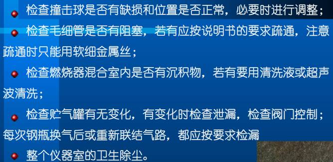 火焰原子化器的保养:每次样品测定工作结束后,在火焰点燃状态下,用去离子水喷雾5~10分钟,清洗残留在雾化室中的样品溶液。然后停止清洗喷雾,等水分烘干后关闭乙炔气。