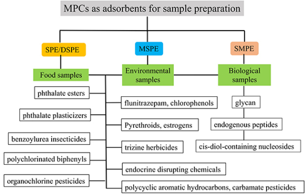 图2.MOFs衍生化碳材料从各种基质中提取有害化合物的应用图