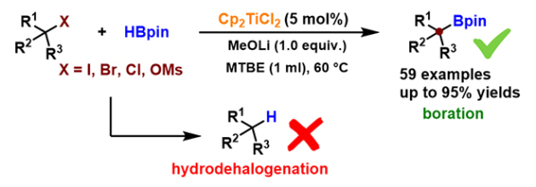 图2.钛催化的烷基卤代物和硼烷直接硼化反应