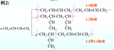 如1,3-丁二烯(CH2=CH-CH=CH2)聚合生成-[-CH2-CH=CH-CH2-]n-