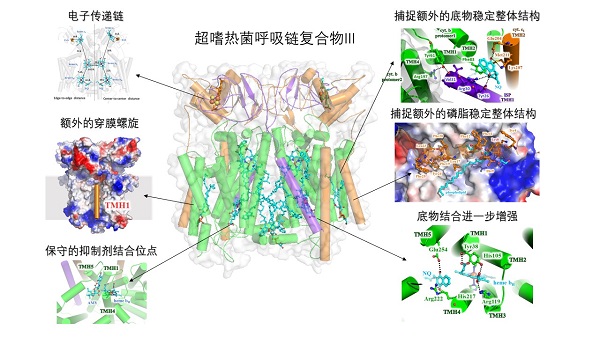 呼吸作用是生命体内最基础的能量代谢活动之一,主要由四个大分子量的呼吸链蛋白复合物完成。呼吸链复合物的功能失活会导致帕金森氏症、阿尔茨海默氏症、多发性硬化、少年脊髓型共济失调以及肌萎缩性脊髓侧索硬化症等多种疾病,因此维持其结构完整和生物活性对于生命体是至关重要的。生活在极端环境中的生命体,如高辐射、高压、高温等,其呼吸链复合物能否维持生物活性是其能否生存的关键。然而,由于缺少来自超嗜热物种呼吸链复合物的结构信息,它们在极端环境下如何维持其结构和功能的完整性仍然是未知的。