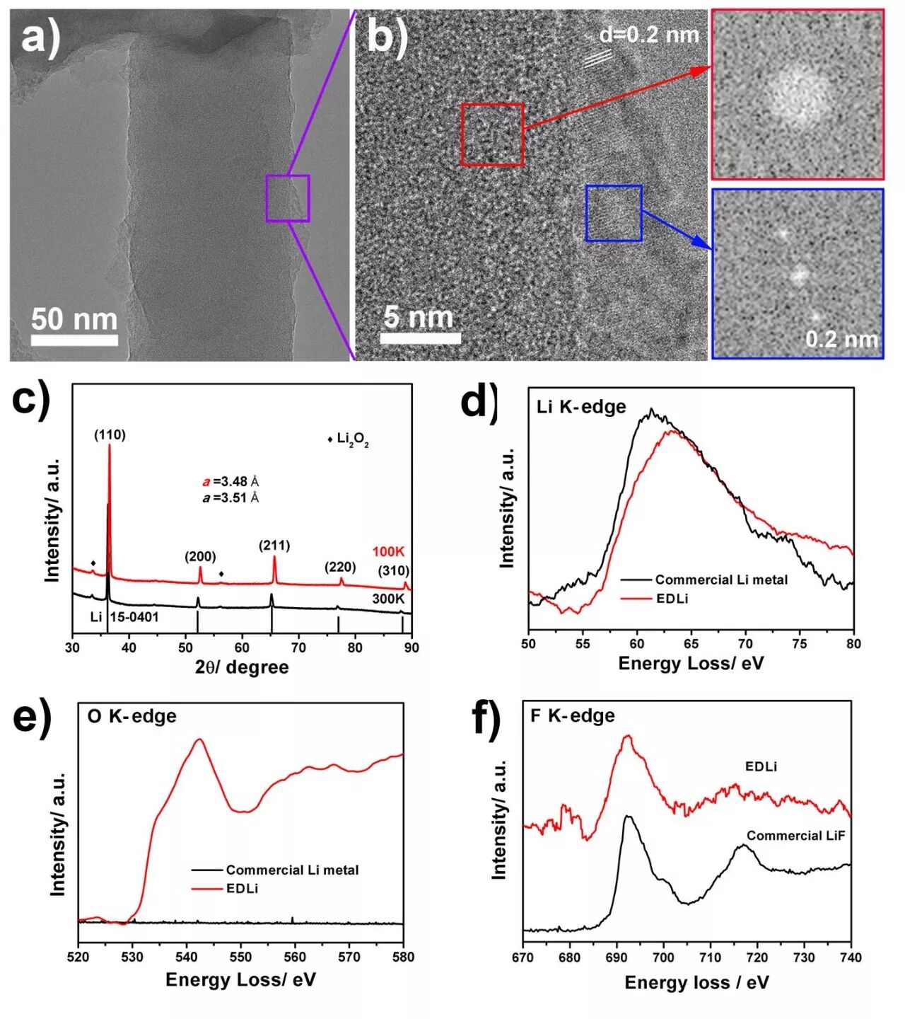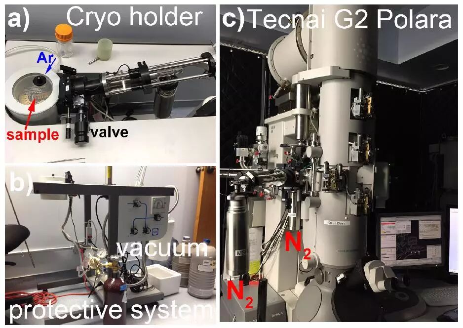 研究人员设计并改进了样品装载和转移装置,使用流动的氩气保护装载样品,自身可抽真空的TEM样品杆转移样品、液氮冷却样品和快速的K2照相机对金属成像。该过程杜绝了一切空气接触,保证了金属锂的新鲜度和实验结果的可靠性。