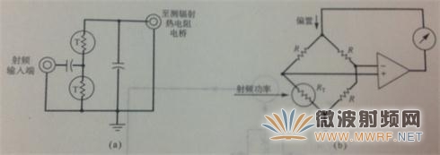 功率计利用称为自动平衡电桥的电路,该电路提供将热敏电阻阻值RT维持恒定在R值上的直流偏置功率。若热敏电阻上的射频功率增加,则电桥使偏置功率减小一个相类似的量。射频功率降低则引起电桥增加偏置功率,使热敏电阻维持恒定的电阻。功率计内的辅助电路对直流功率的这个变化进行处理,以获得功率读数。