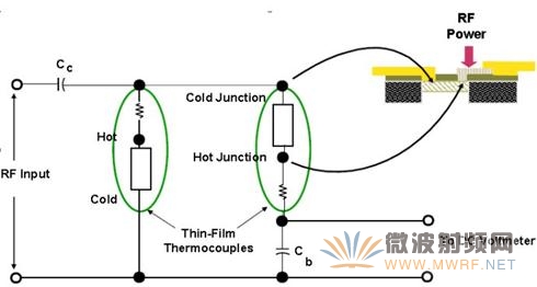 功率传感器中使用的热电偶元件可能由金、(n)型硅和氮化钽电阻材料构成,而薄膜结构则提供工作在超过40GHz频率上所需的小尺寸和精密几何形状。图5是利用这些技术的热电偶传感器的示意图。