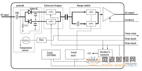 图11是二极管功率计的完整结构框图。传感器用全波检波器的二极管传感器,功率计结构与热电偶类似。
