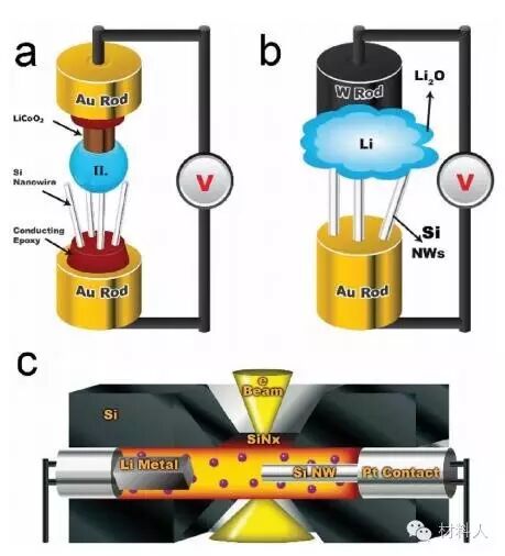 (c)原位电镜下液体电池示意图。