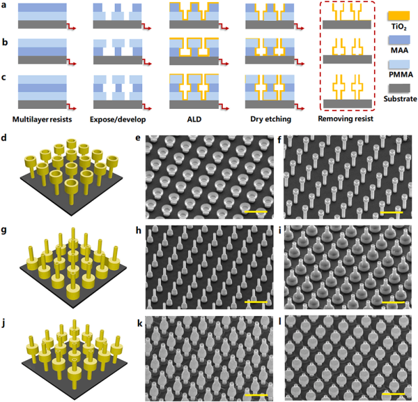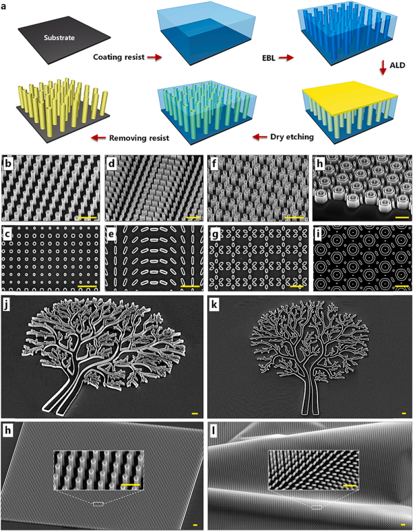图1.软膜板原子层组装加工方法实现多重特异性复杂纳米结构阵列