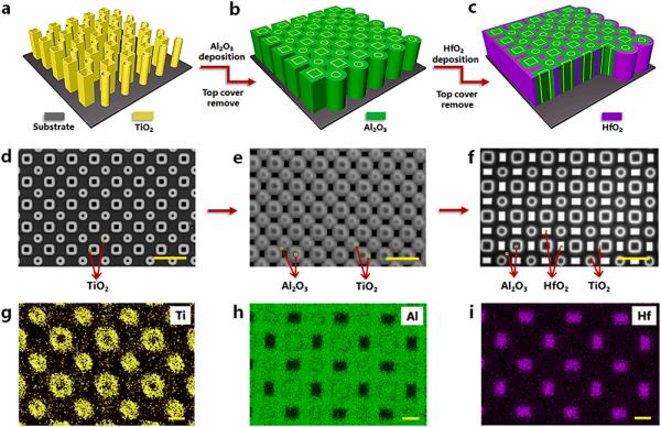 图3.原子层组装技术加工的三种材料杂化复合的三维纳米结构阵列
