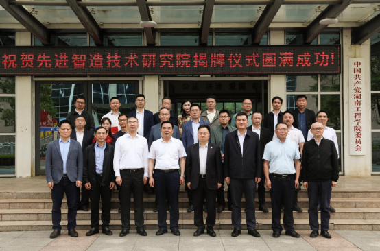 随后杨晓军,湘潭市政协副主席、党组成员唐杰,周在龙和陈岳堂共同为先进智造技术研究院揭牌。