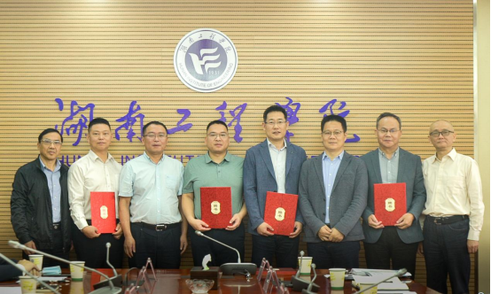 现场还进行了湖南工程学院与湘潭华联电机有限公司,中电互联湘潭分公司与威胜电气有限公司、湖南飞山奇新材料有限公司的产学研校企合作签约。