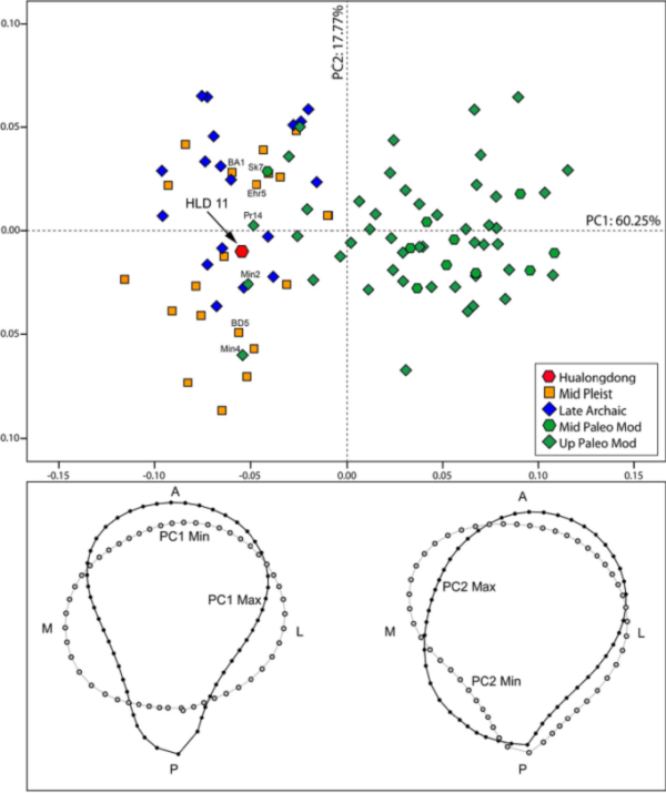 华龙洞位于安徽省东至县,长江以南约10公里。自2014年,中国科学院古脊椎动物与古人类研究所、安徽省文物考古研究所、安徽省池州市东至县文物管理所对该地点开展连续发掘,发现了包括一件较完整的头骨在内的多件人类化石,以及石器和动物骨骼表面痕迹等反映古人类生存活动的征集及大量动物化石。根据动物群组成和年代测试分析,确定华龙洞古人类生存年代在大约30万年前。