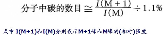 1).从M+1 峰与M 峰强度的比值,可估算出分子中含碳的数目