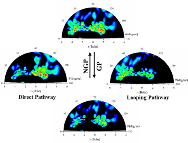 在接近绝对零度的温度下,分子的德布罗意波长远大于分子间相互作用的尺寸,且分子的碰撞只能通过一个或少数几个分波进行,因此,化学反应的量子特性可得到充分体现。此前基于求解非含时薛定谔方程的量子动力学计算表明,O+OH反应中的“几何相位”效应在超低温下明显增强,对特定的产物态考虑“几何相位”前后的预测反应速率能够相差多达两个数量级。该研究在超冷控制化学中具有重要的潜在应用价值而引起广泛关注。非含时量子动力学计算通常只能获得反应的速率常数信息,因而该反应中“几何相位”效应的具体作用机理依然有待探索。