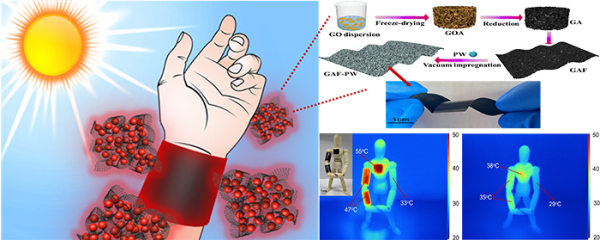 中国科学院大连化学物理研究所热化学研究组研究员史全团队在柔性相变材料研究方面取得进展,通过简单易行的策略合成了石墨烯基的复合相变材料膜,并将其应用于可穿戴的光-热管理器件。该复合相变材料膜具有优异的柔韧性、储热能力、光热转化能力,为智能可穿戴光-热管理器件的研究提供了新思路。