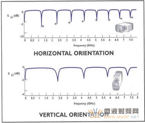 6.焊接方式。水平或垂直。在没有深入研究电容之前,我从未考虑过电容的不同焊接方式会导致它插损和谐振的变化。请看下面的列子: