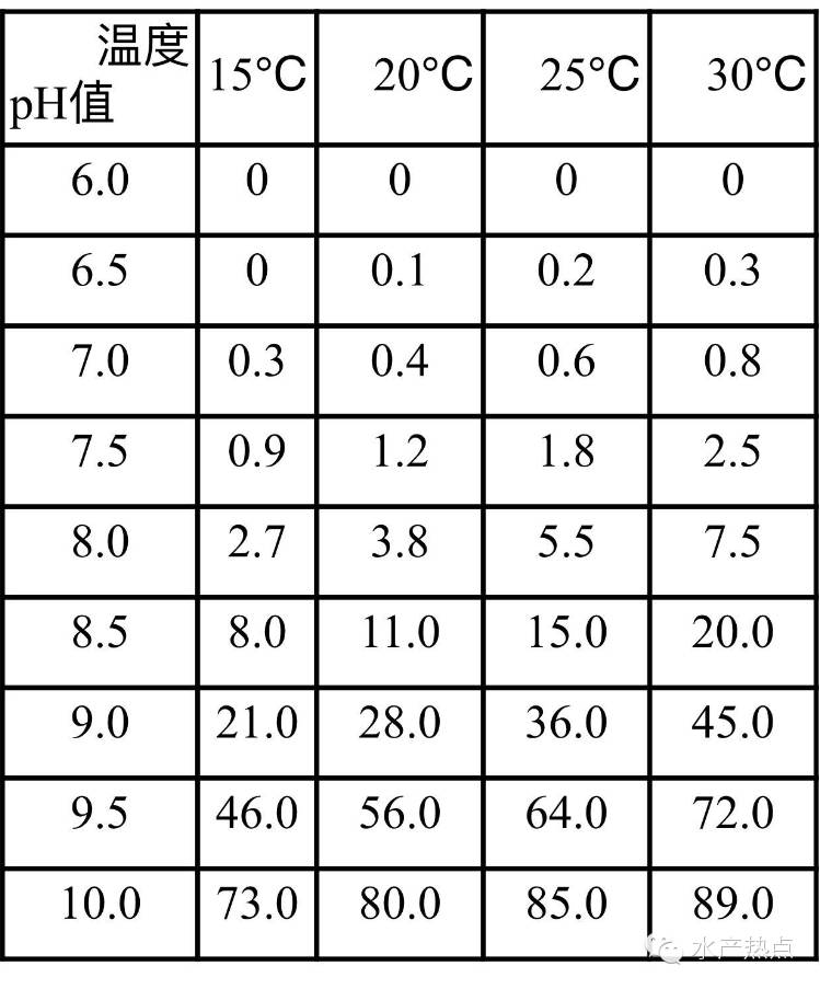 水体中的分子氨(NH3)浓度与对水生动物毒性的关系