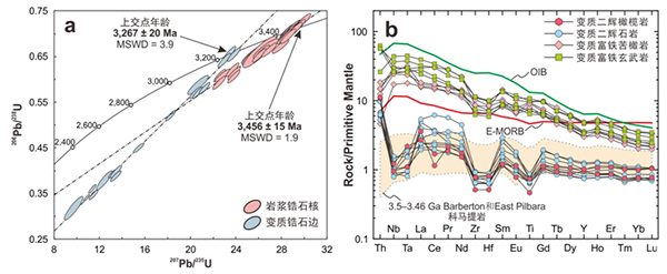 该项研究的意义不仅在于报道了继南非Barberton和澳大利亚East Pilbara 3.5~3.46Ga科马提岩之后全球第三例确凿的地球最古老地幔柱活动的实例,还证明地球的深部地幔早在古太古代便存在了成分不均一性,这种成分上的不均一性的形成可能与地壳物质再循环到深部地幔有关。