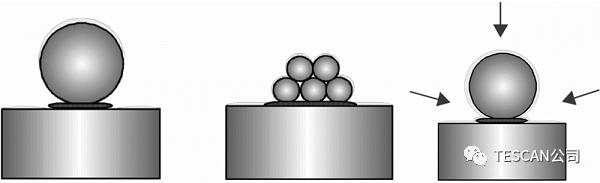 我们粘贴样品的目的是使得样品要观察的表面要能和样品台底座之间具有导电通路,而不是仅仅认为表面导电就好。样品表面导电性再好,如果没有导电通路和样品台联通的话,仍然会有荷电。特别是对于不规则样品,更要注意粘贴时候的导电通路。如图4-4,左边与中间的表面并未和样品台导通,属于不合理的粘贴,而右边形成了通路,是合理的粘贴方式。