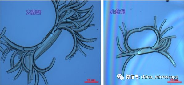 图片介绍:有机材料具有可修饰性,通过改变其组成可以在很大范围内调整其性能,这是有机材料优于无机材料的主要特点。为了更好地调控有机材料的性能,研究人员需要研究单一变量对材料性能的影响,所以需要制备有机单晶。物理气相沉积是制备有机单晶的主要方法之一。图片是在物理气相传输过程中形成的花样,组成了两只大小各异的螃蟹,它们神态自然,憨态可掬,惟妙惟肖!