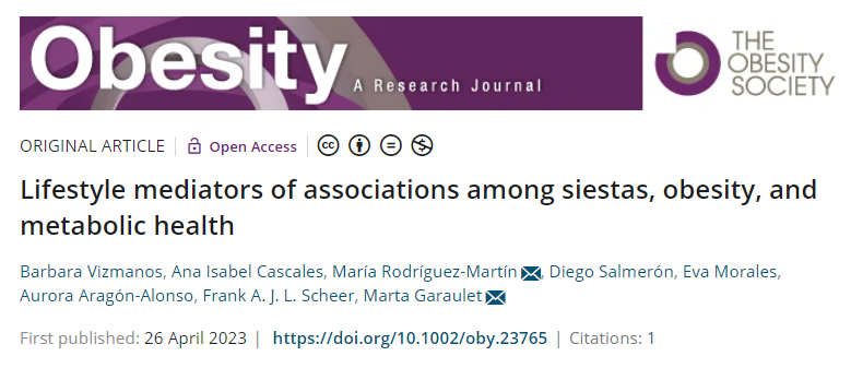 2023年4月26日,美国布莱根妇女医院、西班牙穆尔西亚大学的研究人员在" Obesity "期刊上发表了一篇题为" Lifestyle mediators of associations among siestas,obesity,and metabolic health "的研究论文。