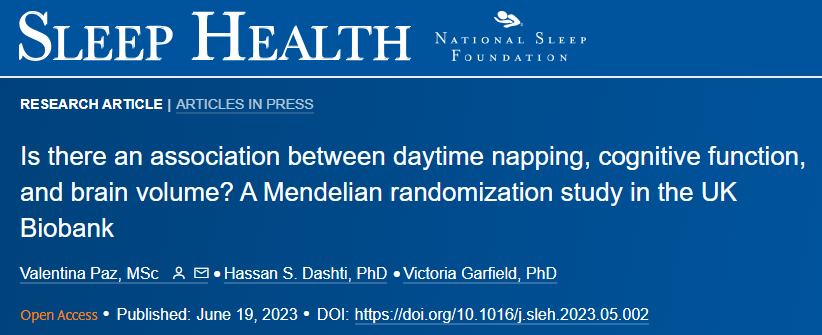 2023年6月19日,乌拉圭共和国大学、英国伦敦大学、美国哈佛医学院的研究人员在" Sleep Health "期刊上发表了一篇题为" Is there an association between daytime napping,cognitive function,and brain volume?A Mendelian randomization study in the UK Biobank "的研究论文。