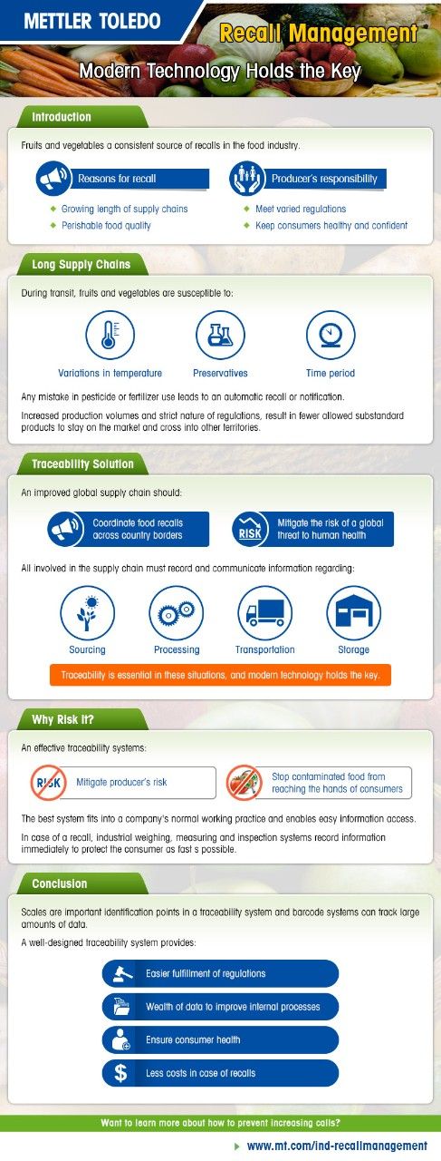水果和蔬菜一直是食品行业中召回的对象。 原因多种多样。 但是,召回通常源于供应链的显著延长,因而更有可能导致处理不一致,而蔬菜和水果具有易腐烂的特性。