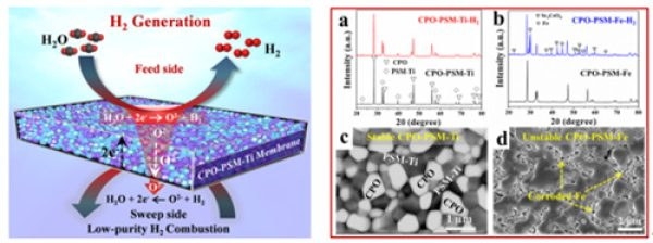 新型钛基透氧膜反应器内制氢;钛基双相膜与铁基双相膜材料稳定性对比