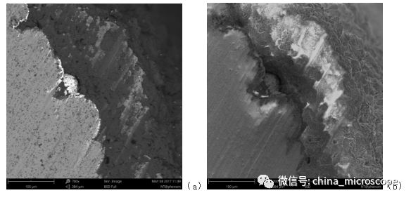 不光在背散射模式,同样的,二次电子也有类似的情况。图4反映的是二次电子和背散射模式的不同,体现了形貌衬度和成分衬度的差异。根据实际需要选择不同的模式,背散射更多反映成分衬度,有利于杂质的识别、析出物的判断等;二次电子模式更多反映表面形貌起伏,信号来自图3中显示的SE信号产生区,在最表层的约10nm范围,适合于断口失效分析、需要高分辨的纳米材料研究等场合。