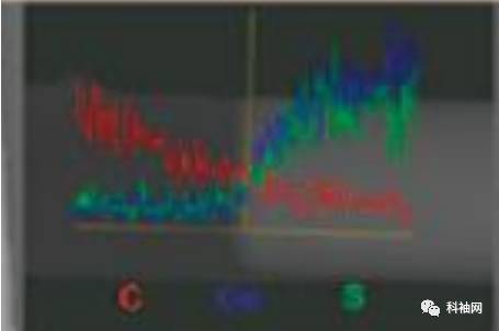 如图 6 所示为用 EELS 软件自动分析同时含有氧( Z O =8)、 钡( ZBa=56) 及铜( ZCu=29)元素的样品。从能量坐标可以判定出元素种类, 通过计算可以得到氧、钡、铜的相对含量。