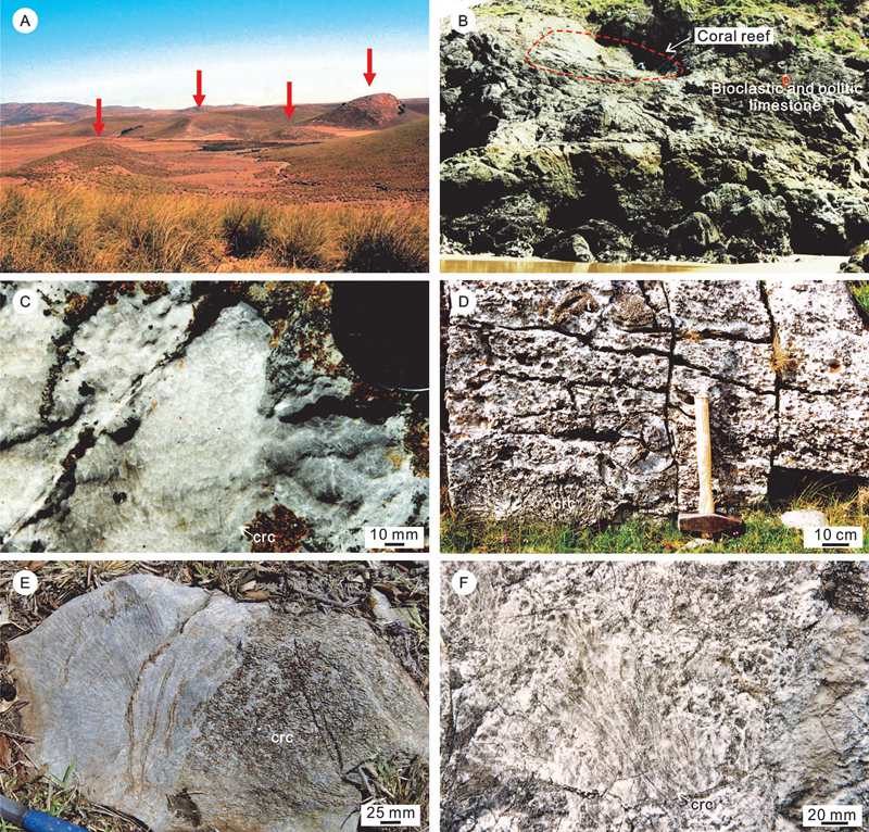 全球其它地区(摩洛哥,A;英国,B-D;澳大利亚,E;日本,F)维宪晚期珊瑚礁野外图片