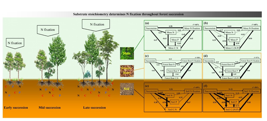 图:森林演替过程通过改变基质资源化学计量比驱动生物固氮