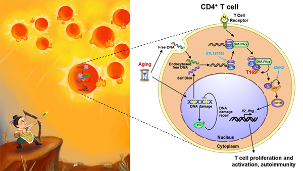 综上,该研究揭示了衰老CD4+ T细胞中不依赖于cGAS/STING的DNA感知信号通路,其可促进T细胞的活化和增殖并导致衰老相关自身免疫病的发生发展。进一步研究和开发阻断T细胞中DNA感知信号传导的抑制剂可能有利于临床治疗与衰老相关的自身免疫性疾病。