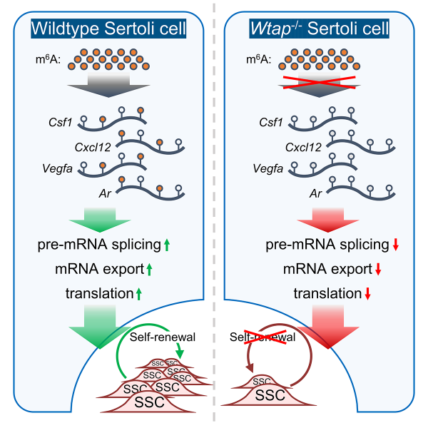 图1.支持细胞中WTAP介导的m6A修饰调控精原干细胞命运决定的模式图