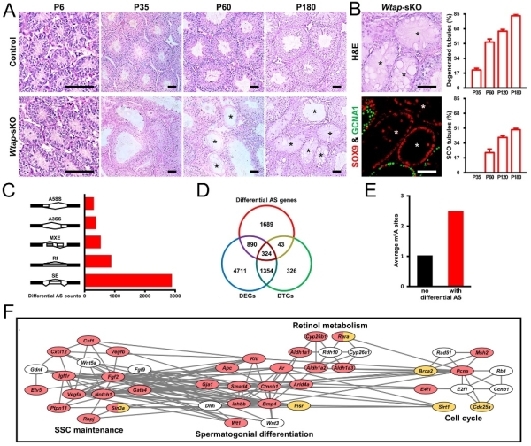 图2.支持细胞中WTAP缺失导致精原干细胞库受损与相关基因表达紊乱