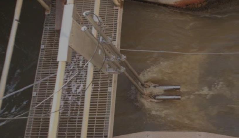 主要仪器:sc200控制器、UVAS plus sc、浸入式安装支架等,传感器安装示意图(如图1所示)。