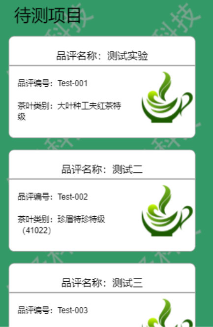 可随时查看品评结果,包括但不限于项目名称(茶样各因子分值、总评),评价内容(条索、整碎、色泽、净度、香气、