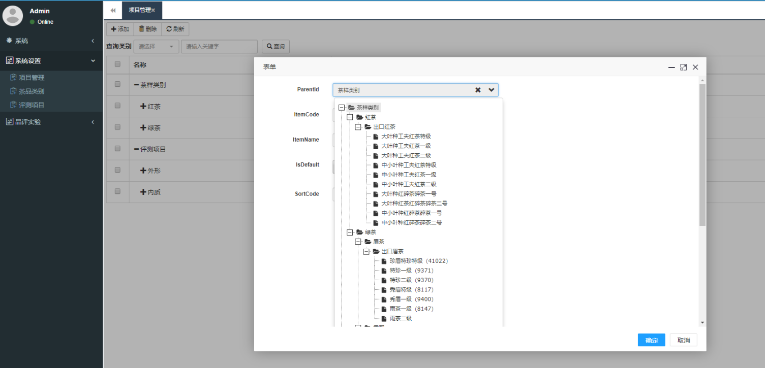 (1)项目信息管理:可进行项目管理,茶叶品类等设置。