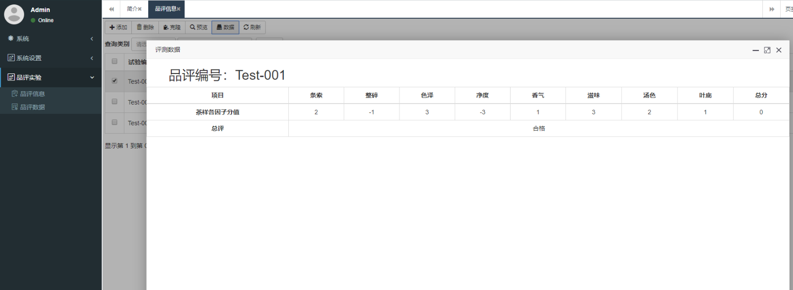 茶叶感官品评软件是一款为开展规范的茶叶感官评价活动开发的计算机管理软件。软件的主体功能是感官检验模块,可实现感官检验实验设计、结果录入、结果分析、报告输出的在线自动化。采用在全球及全国范围内普遍认可、协调一致的感官分析标准化方法,并结合良好的感官分析实践,以流程提示、任务列表、任务实施的配套功能(各类图表生成和统计方法后台链接)等形式,方便实现样品制备、样品提供、评价员评价、结果汇总、结果分析、检验报告等感官评价的主要活动过程并进行有效管理。该系统由三个管理模块构成,分别为:系统、系设置和品评试验,可为用户提供电子书式的感官分析知识查询,以及感官评价活动的历史记录检索。系统设计采用模块级安全管理,确保用户数据的完整性和安全性。该软件可广泛应用于茶叶产品感官分析的实验室、企业行业、检测机构和科研机构等。