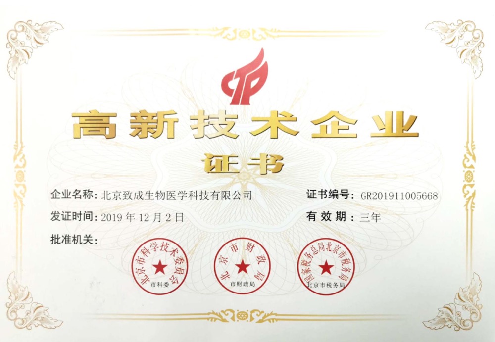 北京致成生物医学科技有限公司成立于2014年4月,注册资金500万元,总部位于北京市经济技术开发区亦庄生物医药园,是集“医研权产销”于一体的综合性生物医药中关村高新技术、国家高新技术,中关村金种子企业等。公司现有全/兼职员工62人,其中硕士及以上学历者57人。核心成员全部出自院士团队,有着丰富的项目管理经验、充足的科研经费以及优质的医疗市场资源。公司秉承“态度决定一切,细节决定成败”的服务理念,辅助国内三甲医院60余位客户实施国家863项目、973项目、公益性行业科研专项项目以及国家重点、重大和国家自然基金项目等80余项,申请/授权国家ZL50余项,注册商标60余件。