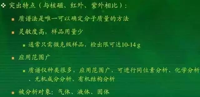 ③ 二次离子质谱仪(SIMS) ,但以上的分类并不十分严谨。因为有些仪器带有不同附件,具有不同功能。例如,一台气相色谱-双聚焦质谱仪,如果改用快原子轰击电离源,就不再是气相色谱-质谱联用仪,而称为快原子轰击质谱仪(FAB MS)。另外,有的质谱仪既可以和气相色谱相连,又可以和液相色谱相连,因此也不好归于某一类。在以上各类质谱仪中,数量最多,用途最广的是有机质谱仪。