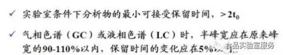 测试部分中分析物的保留时间(或相对保留时间),应在一个特定的保留时间窗口范围内与校正标准的保留时间相符。保留时间窗口与该色谱系统的分辨能力相当。分析物和内标的保留时间之比,应与校正溶液的相对保留时间一致,GC偏差为±0.5%,LC偏差为±2.5%。