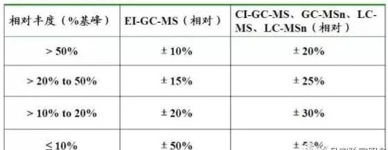 ☞相对离子丰度最大容许误差