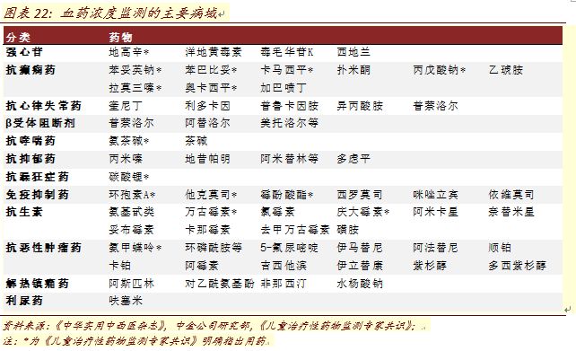 6亿元市场空间。我们预计国内精神类质谱检测市场约5.4亿元,器官移植免疫抑制用药质谱检测市场约300万,加上其他小类用药市场总计约6亿元。计算如下: