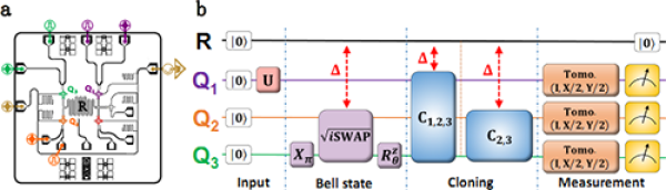 此外,许凯、郑东宁和范桁与福州大学副教授杨贞标、郑仕标团队合作,在超导量子计算平台实现了通用量子克隆机。量子信息的非克隆原理表明,任意量子态不能被确定的量子线路准确克隆,但可达到一定的保真度。过去的量子克隆演示大多是几率型或不涉及量子纠缠大小的测量,此次实验补足了这两个重要元素,保真度接近理论上限(npj Quantum Information 7, 44 [2021])。