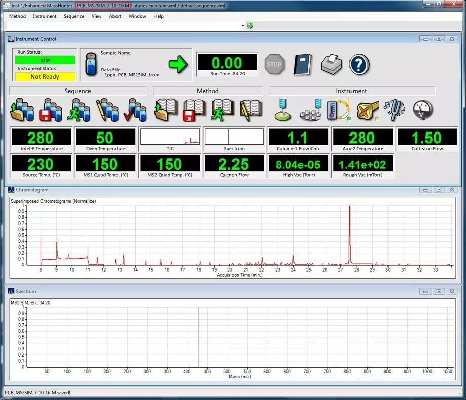 首先,您需要将单四极杆方法复制到三重四极杆系统中的预期本地目录。在我们的示例中,我们将会为 28 种多氯联苯 (PCB) 同系物的分析载入并运行一个选择离子监测 (SIM) 方法。
