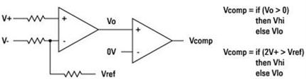 随后将接收器的输出与 0V 进行比较,从差分输入信号产生内部逻辑信号。请注意,最终比较结果将对“差分信号高于 Vref 还是低于 Vref?”的问题作出解答: