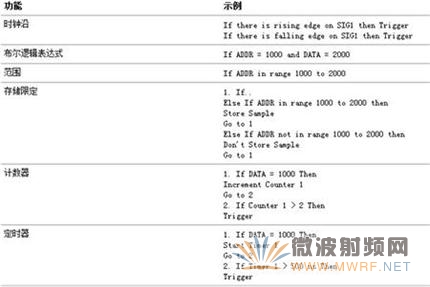 由于逻辑分析仪触发提供了大量功能,因此下表将对本文中介绍的功能进行简要概述。该表将对这些功能进行逐一描述。