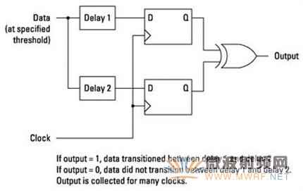 通过逻辑分析仪使用少量的偏移延迟对每个通道进行双重采样的功能,以及通过使用独有的 OR 操作比较延迟的样本可进行眼定位 测量。